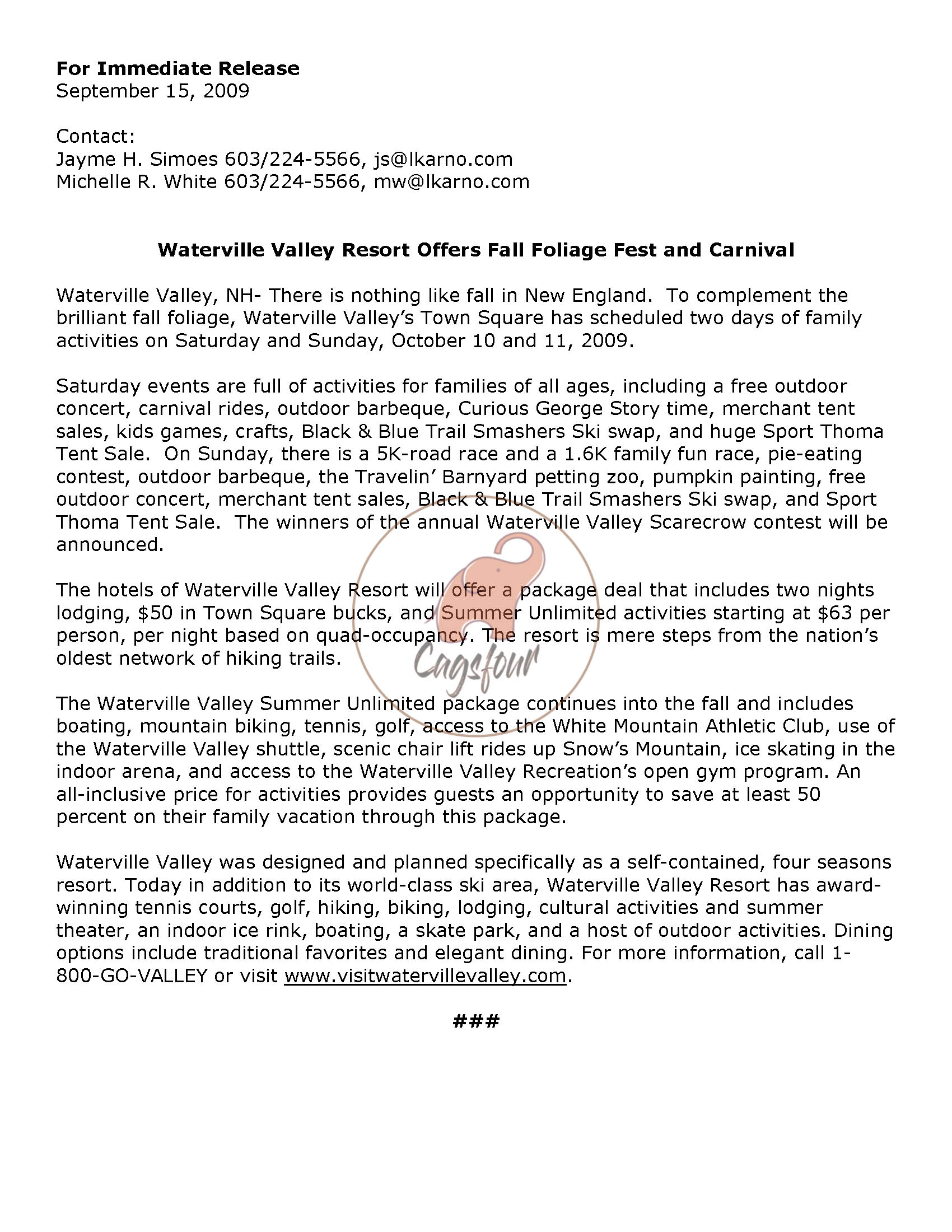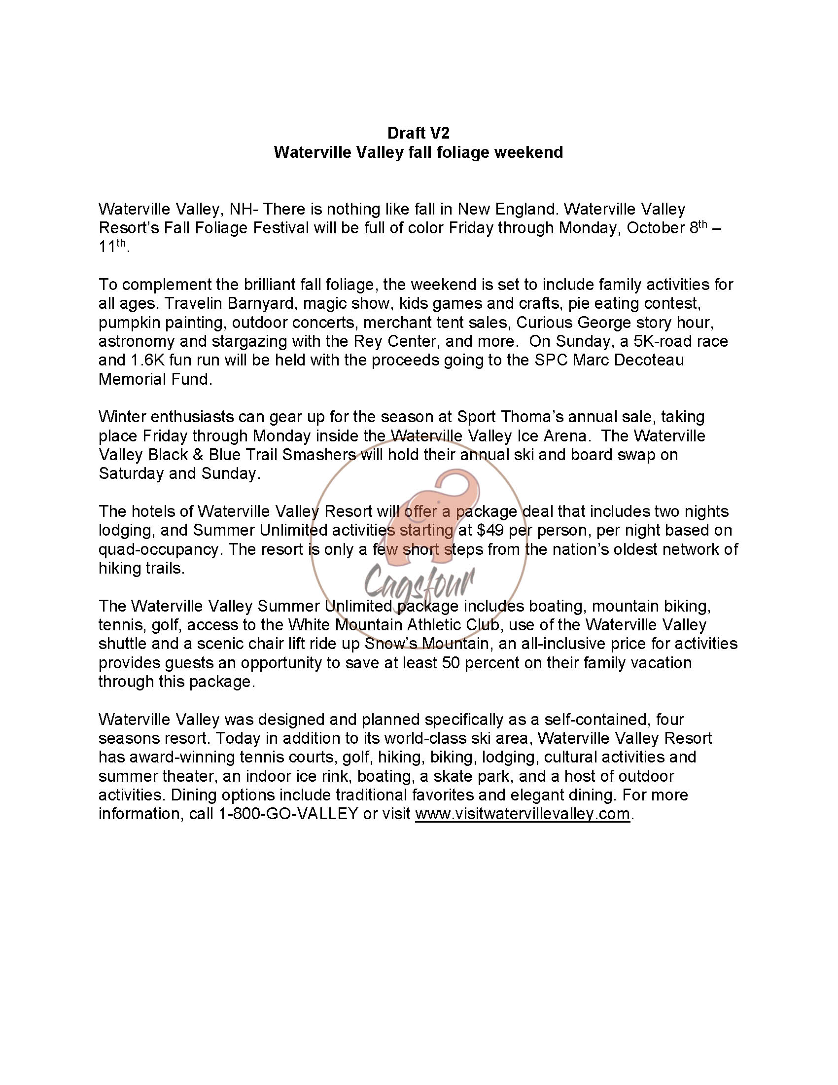 Press Releases | Waterville Valley Resort